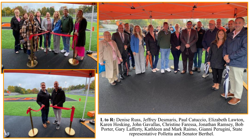 New high school Principal Gianni Perugini and Athletic Director Paul Catuccio cut the red ribbon to open the field.