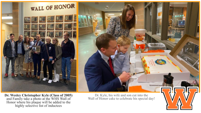 Each year, a committee comprised of the superintendent, teachers, and community members selects alumni from Watertown High School to be inducted into the Watertown Wall of Honor. This year's Wall of Honor inductee is Dr. Wesley Christopher Kyle (Class of 2005). On Monday, October 23, 2023 the Watertown Board of Education recognized and honored Dr. Kyle at a regularly scheduled BOE meeting and reception. Throughout the evening, those in attendance to support Dr. Kyle as he received the special honor shared stories of the impact he continues to have on their lives. Even a few special attendees shared that Dr. Kyle had provided them life saving medical care as a patient and they wanted to honor Dr. Kyle by attending the special event.
