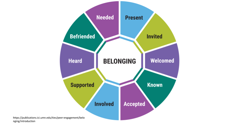 Over the course of this year, you may hear about the work of Erik Carter and Elizabeth Biggs, two important scholars with the Ties Center. Their research on the ten dimensions of Belonging is rooted in the different facets humans need to experience in order to feel a true sense of belonging.