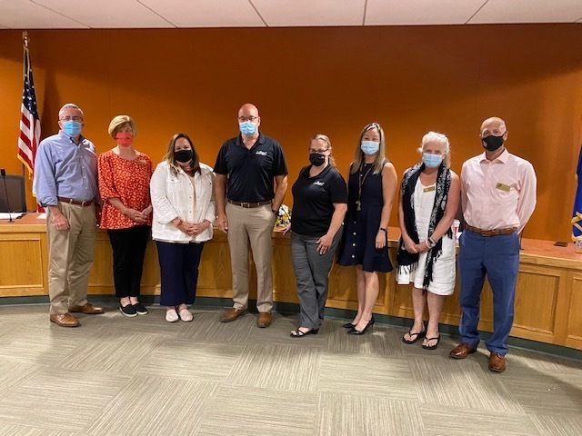 L to R: Mr. Brian Flaherty; Ms. Karen Hosking; Chairwoman Leslie Crotty; Mr. Bob LaBonne Jr.; Ms. Linda Morris; Dr. Villanueva; Ms. Cindy Eastman; Mr. Jason Malagutti; Ms. Janelle Wilk (virtual); Ms. Josephine Rosa (virtual).