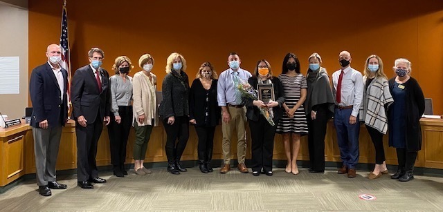 The Watertown Board of Education would like to congratulate Watertown High School Principal Dr. Janet Parlato presented with the William Cieslukowski Outstanding First-Year Principal Award from the Connecticut Association of Schools in May 2020. An official presentation of her plaque was presented to her on November 2, 2021, at a ceremony at Watertown High School by Bill Silva, Associate Executive Director from the Connecticut Association of Schools. The First Year High School Principal award recognizes a first year high school principal who has had a positive impact on their school or school district.