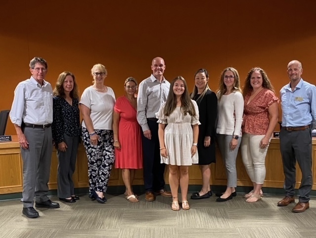 (LtoR): BOE Members J. Gavallas, C. Phelan, C. Faressa, K. Palomba, R. Makowski, Karina Deros, Dr. V, E. Lawton, C. Hillian, and J. Malagutti.
