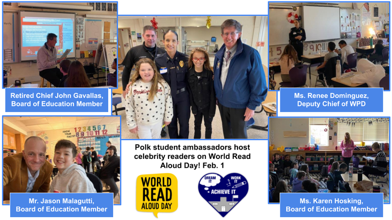 Celebrity readers from the WPD, Board of Education, Central Office and Administrative team visited Polk School on February 1 to take part in World Read Aloud Day! Thank you to all of the student ambassadors and teachers for organizing such a special day to celebrate the importance of reading and the power of storytelling!