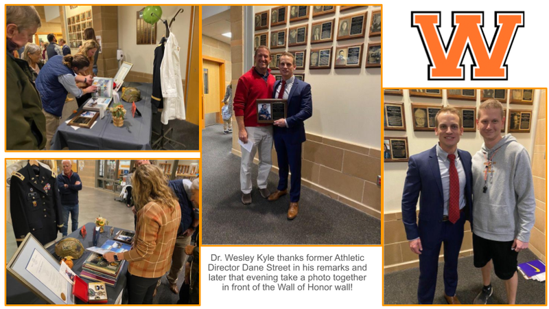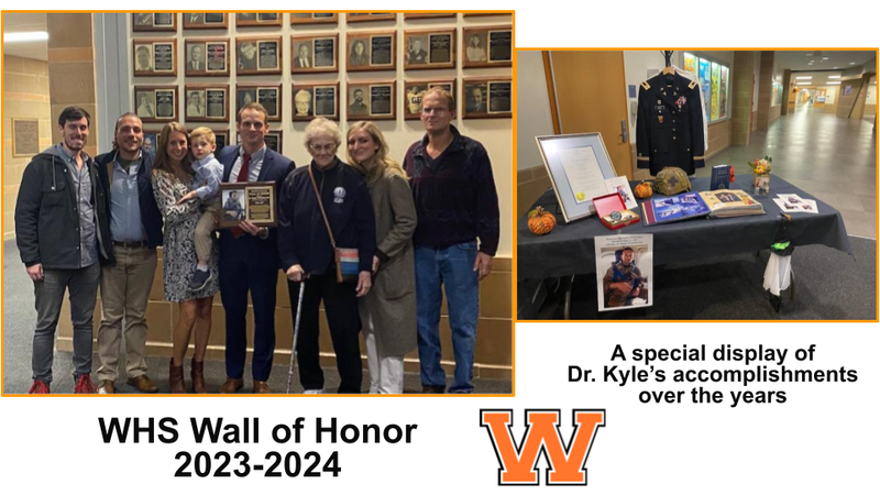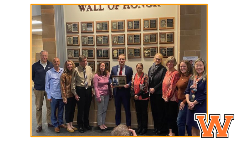 Each year, a committee comprised of the superintendent, teachers, and community members selects alumni from Watertown High School to be inducted into the Watertown Wall of Honor. This year's Wall of Honor inductee is Dr. Wesley Christopher Kyle (Class of 2005). On Monday, October 23, 2023 the Watertown Board of Education recognized and honored Dr. Kyle at a regularly scheduled BOE meeting and reception. Throughout the evening, those in attendance to support Dr. Kyle as he received the special honor shared stories of the impact he continues to have on their lives. Even a few special attendees shared that Dr. Kyle had provided them life saving medical care as a patient and they wanted to honor Dr. Kyle by attending the special event.